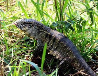 Keywords: gold tegu lizard brazilian natural landscape looking for food brazil