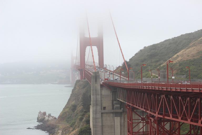 Keywords: golden gate bridge san francisco architecture cars road fog