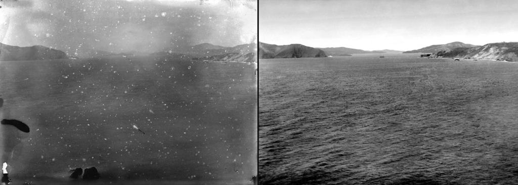 | Keywords: Golden Gate San Francisco c1895 Digital Restoration.jpg Example of the digital image restoration of a severely water and mildew damaged 5x7 inch glass photographic plate of the Golder Gate in San Francisco California The photograph was taken about 1895 by F R Tindell from Land's End in Lincoln Park on the Northwest tip of the San Francisco Peninsula The Cooper Collections uploader's private collection; also displayed on line at http //cprr org/Museum/Golden_Gate_c1895 html CPRR org ; Original glass plate negative now in the possession of the family of the photographer's late great granddaughter circa 1895 original photograph ; 2004 digital restoration Frank R Tindall original photograph ; Bruce C Cooper http //digitalimageservices com/restoration/DIS_06/index html Digital Image Services com the uploader digital restoration <center>Original image</center> PD-old-100 <center>Restoration</center> Centpacrr wikipedia en Cc-by-sa-3 0 GFDL redundant Original upload log en wikipedia Golden+Gate+San+Francisco+c1895+Digital+Restoration jpg wikitable - 2012-03-14 14 00 1445×518× 341305 bytes Centpacrr Example of the digital image restoration of an severely water and mildew damaged 5x7 inch glass photographic plate of the Golder Gate in San Francisco California The photograph was taken about 1895 by F R Tindell from Land's End in Lincoln Park on Uncategorized 2016 April 11 |