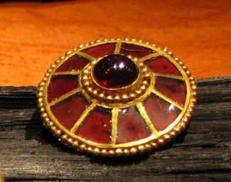 Keywords: Golden sword pommel from Tama 5th century AD.jpg en Golden sword pommel Tama area north of the Black Sea 5th century A D Römisch-Germanisches Museum Diergardt Collection Cologne Germany nl Gouden zwaardknop Tama; gebied noordelijk van de Zwarte Zee 5e eeuw n Chr Römisch-Germanisches Museum Slg Diergardt Keulen Duitsland de Goldener Schwertknauf Nördliches Schwarzmeergebiet Tama 5 Jahrhundert n Chr Römisch-Germanisches Museum Sammlung Diergardt Köln Deutschland Own ease 2009-12-29 Gold jewellery Sword pommels Cloisonné of Europe 5th-century metalwork Collections of the Römisch-Germanisches Museum Late antique jewellery |
