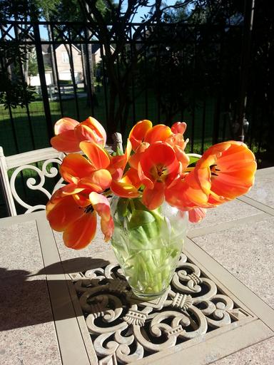 Keywords: golden tulips colorful sunlight outdoors sunny day