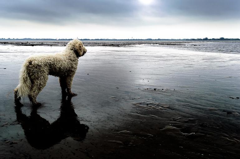 Keywords: goldendoodle dog beach bad weather hybrid wildlife photography pet