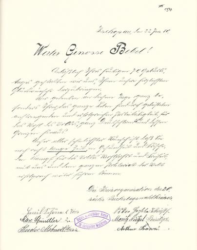 | Keywords: Goldenes Buch zum 70. Geburtstag August Bebel 1910 Seite 154.jpg  Goldenes Buch zum 70 Geburtstag August Bebel 1910 Seite_ jpg 153 155 Glückwunschschreiben zum 70 Geburtstag von August Bebel SPD-Kreisorganisation des 20 Sächsischen Reichstagswahlkreises Zschopau August Bebel zum siebzigsten Geburtstag 22 Februar 1910 / mit einer Nachbemerkung von Ursula Herrmann Reprint des Unikats aus dem Zentralen Parteiarchiv der SED Dietz Verlag Berlin 1989 Lizenzausgabe Saur 1989 ISBN 3-598-07256-2 self scanned from own book 1910 Diverse Goldenes Buch zum 70 Geburtstag August Bebel 1910 PD-old-70-1923 |