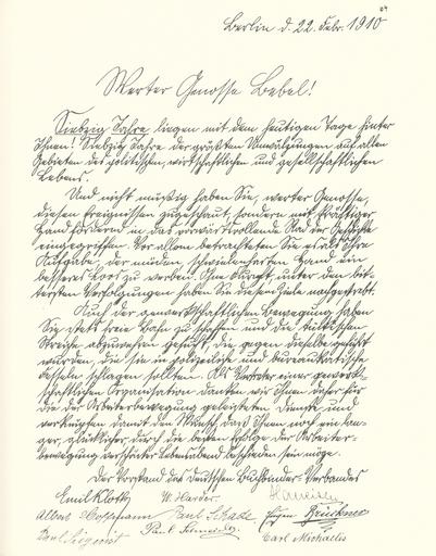 | Keywords: Goldenes Buch zum 70. Geburtstag August Bebel 1910 Seite 064.jpg Goldenes Buch zum 70 Geburtstag August Bebel 1910 Seite_ jpg 063 065 Glückwunschschreiben zum 70 Geburtstag von August Bebel Vorstand des deutschen Buchbinder-Verbandes August Bebel zum siebzigsten Geburtstag 22 Februar 1910 / mit einer Nachbemerkung von Ursula Herrmann Reprint des Unikats aus dem Zentralen Parteiarchiv der SED Dietz Verlag Berlin 1989 Lizenzausgabe Saur 1989 ISBN 3-598-07256-2 self scanned from own book 1910 Diverse Goldenes Buch zum 70 Geburtstag August Bebel 1910 PD-old-70-1923 |
