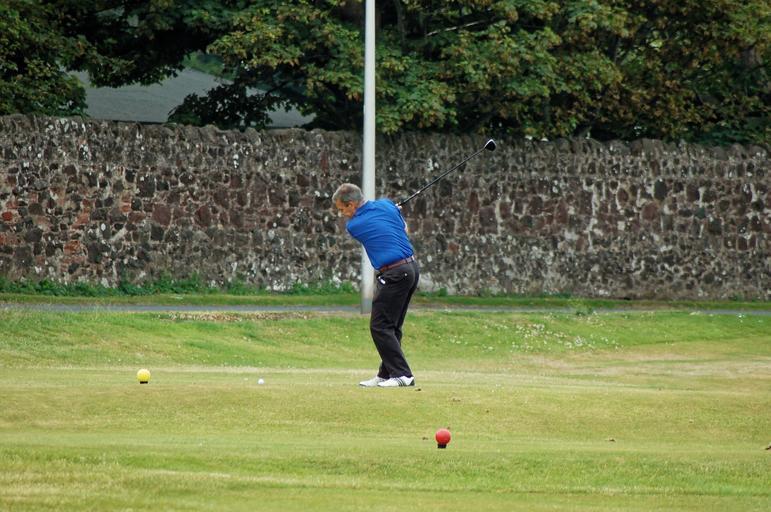 Keywords: golfer tee shot tee golf swing golf course golf sport leisure shot course grass hobby golf tee club player golfing teeing recreation adult male swinging outdoors recreational