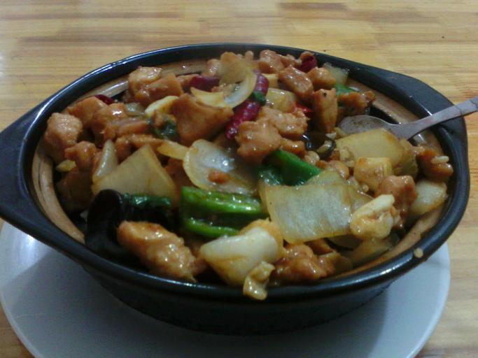 Keywords: Gongbao Jiding Iron Pot in China.jpeg en Gongbao Jiding Kung Pao Chicken Iron Pot in Fuyang city Anhui province China Gongbao Jiding is one dish from Chinese restaurants abroad that is authentic and reasonably close to the mainland dish 2014-09-26 own Huihermit other versions cc-zero Kung Pao chicken Uploaded with UploadWizard |