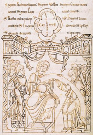 Keywords: Gonnor de crepon.jpg Gonnor wife of Richard I confirming a charter of the abbey of the Mount-Saint-Michel from archive of the abbey XII century PD-old Gunnora Duchess of Normandy