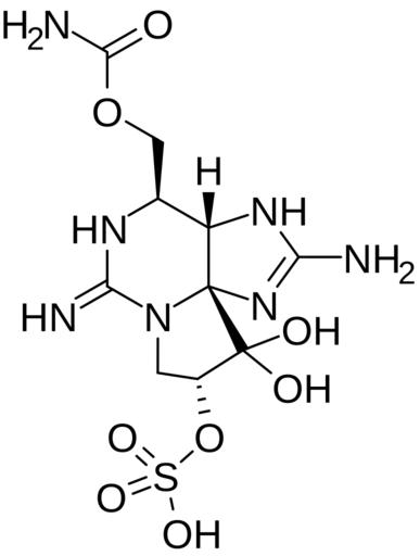 Keywords: Gonyautoxin 2.svg Chemical structure of gonyautoxin 2 Own 18 10 16 August 2016 UTC Ed Edgar181 Marine toxins Alkaloids Organosulfates Guanidines Carbamates