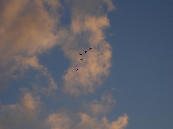 Keywords: goose geese migratory birds birds bird swarm flock of birds sky clouds