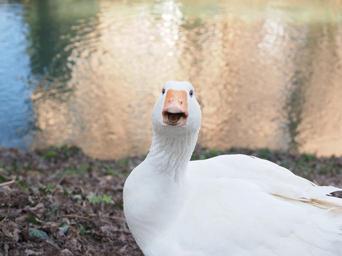 Keywords: goose head neck cheeky attack bill animal white livestock bird poultry domestic goose bank river riverside
