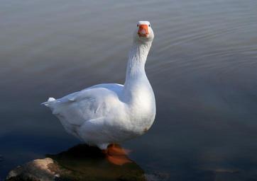 Keywords: goose white goose water pond fowl looking straight forward long necked quizical look beautiful creature
