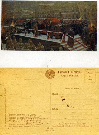 | Keywords: Gorelov leader.jpg en Gorelov G N ru Ка тина Го елова Гав иила икитича Похо оны Вождя Почтовая ка точка Из автобиог афии Го елова Гав иила икитича С 1925 г по 1927 г был заведующим музея быв Донского онасты я и написал Похо оны Вождя» и «9 янва я» для выставок АХРР с А хив Го елова аксима Ю ьевича внука художника Го елова Гав иила икитича Отк ытки и почтовые ка точки Го елов Га иил икитич 1926 год PD-Art Postcards of Russia Scans of both sides Vladimir Lenin in art Funerals in Russian art Gavriil Gorelov Vladimir Lenin's funeral |