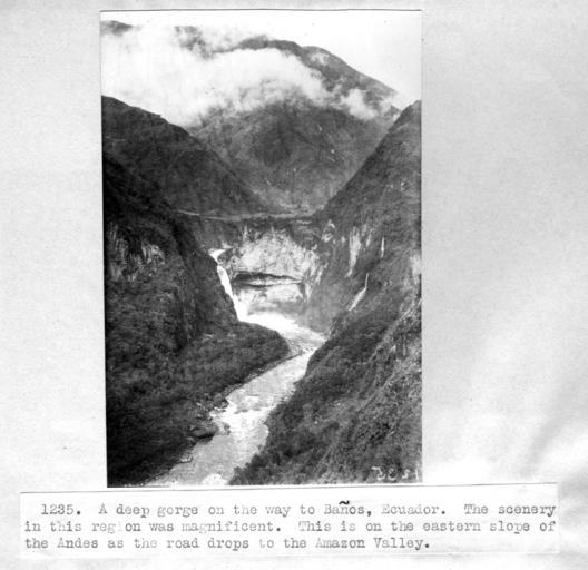 MAKE A MEME View Large Image Hitchcock Type: black-and-white photograph, 4.75 x 3 inches Date: c.1923-1924 Local number: SIA2011-0568 Summary: A deep gorge near Baños, Ecuador. The scenery in this region was magnificent. This is on the eastern slope of the Andes as ...