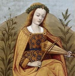 Keywords: Gorgone BnF Français 599 fol. 19.jpg fille des divinités Phorcys et Céto Elle porte une couronne de fleurs un chapel chapeau répandu au Moyen-Âge et joue de la vièle La plante à droite de l'image est une fougère <br /> Miniature extraite de la collection De mulieribus claris de Boccace Bibliothèque nationale de France BNF Cote Français 599 Folio 19 <br /> Origine Cognac France author painting Français 599 19 century 15 - century 16 PD-old Gorgons De mulieribus claris BnF Français 599 Yellow clothing in art female Female blond hair in art Vielle Rebec 15th-century paintings of musicians Wreaths in art 16th-century paintings of musicians Paintings of sitting women playing musical instruments outdoors |