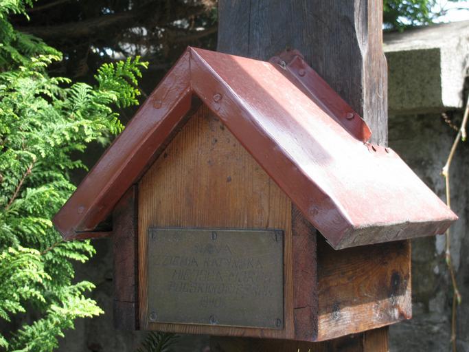 Keywords: Gorlice Katyn ground.jpg en Urn with ground from Katyn on memory cross on communal cemetery in Gorlice pl Urna z ziemią katyńską na krzyżu postawionym dla upamiętnienia ofiar tamtej zbrodni na cmentarzu komunalnym w Gorlicach own Mimi-chan 2010-04 Cemeteries in Gorlice Monuments and memorials of the Katyń Massacre in Poland |