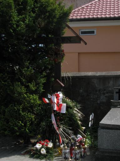 Keywords: Gorlice Katyń krzyż.jpg en Cross for memory of Katyn victims on communal cemetery in Gorlice pl Krzyż postawiony na cmentarzu komunalnym w Gorlicach aby upamiętnić ofiary zbrodni katyńskiej own Mimi-chan 2010-04-29 Cemeteries in Gorlice