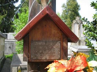 Keywords: Gorlice Oświęcim ziemia.jpg en Urn with ground from Auschwitz on memory cross on communal cemetery in Gorlic pl Urna z ziemią z Oświęcimia na krzyżu postawionym dla upamiętnienia tamtejszych ofiar na cmentarzu komunalnym w Gorlicach own Mimi-chan 2010-04-29 Cemeteries in Gorlice |