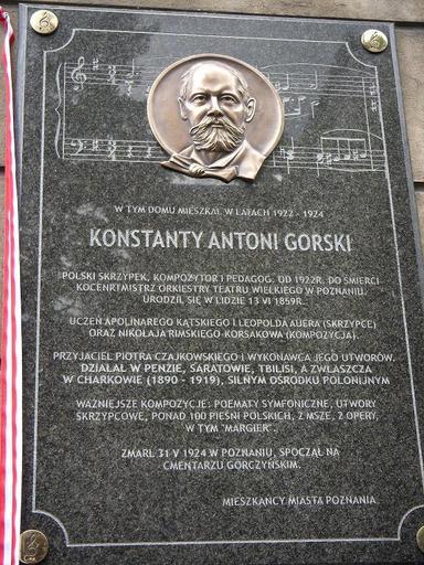 Keywords: Gorski-tablica.jpg pl Tablica pamiątkowa poświęcona Konstantemu Gorskiemu na budynku przy ul Niegolewskich 24 w Poznaniu own Bogumił Selerski autor tablicy Krzysztof Jakubik 2009-05-23 Konstanty Gorski