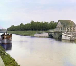 | Keywords: Gorskii 04418u.jpg Tow rope bridge in the village of Lava Russian Empire A stone bridge carries the canal path over two culverts to divert high water away from the main canal Sergei Mikhailovich Prokudin-Gorskii Collection Library of Congress LOC-image ppmsc 04418 1909 Creator Sergey Prokudin-Gorsky digital rendering for the Library of Congress by Walter Frankhauser / WalterStudio There are no known restrictions on the use of this image PD-Russia PD-1923 Ladoga Canal Lavrovo Photo of Saint Petersburg Governorate by Sergey Prokudin-Gorsky |