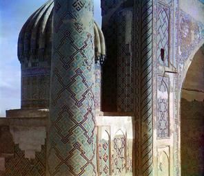 Keywords: Gorskii 04440u.jpg Portion of Shir-Dar minaret and its dome from Tillia-Kari Samarkand View of Shir-Dar madrasah Sherdor Madrasah mosaic details ” in Samarkand Uzbekistan Sergei Mikhailovich Prokudin-Gorskii Collection Library of Congress LOC-image ppmsc 04440 between 1905 1915 Sergei Mikhailovich Prokudin-Gorskii digital rendering for the Library of Congress by Walter Frankhauser / WalterStudio There are no known restrictions on the use of this image PD-Russia PD-1923 Exterior views of Sherdor madrasah Mosaics in Uzbekistan A Tiles in Uzbekistan ¢ Islamic mosaics R Islamic architectural elements Photos of Samarkand by Sergey Prokudin-Gorsky