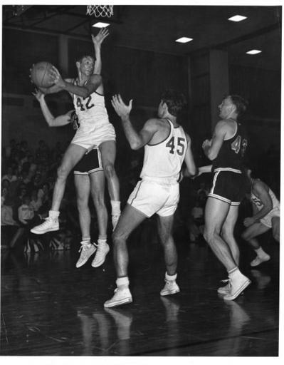 Keywords: goshen college goshencollege goshen college students goshencollegestudents students student college students collegestudents basketball black white photograph keith springer fred hostetler mennonite mennonites athletics athletic sport sports blackandwhite monochrome court game people black and white Goshen College student athletics 1958-1974 #42 is Keith Springer #45 is Fred Hostetler Citation: Goshen College Information Services Audiovisual Materials, 1958-1974. V-04-011. Mennonite Church USA Archives - Goshen. Goshen, Indiana. Goshen College student athletics 1958-1974 #42 is Keith Springer #45 is Fred Hostetler Citation: Goshen College Information Services Audiovisual Materials, 1958-1974. V-04-011. Mennonite Church USA Archives - Goshen. Goshen, Indiana. |