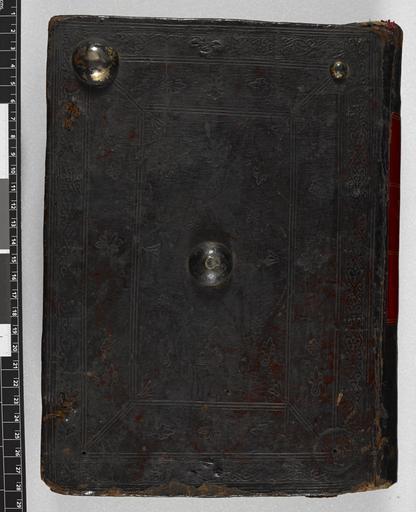 | Keywords: Gospel Lectionary (Gregory-Aland l 1496 =-l 461-=- l 1206-) - Lower cover (Add MS 37008).jpg  Style Panel design Fleur de lis Byzantine; Caption Lower cover; Colour Red; Edge Unspecified exhibition history Decorative Technique Tooled in blind; Cover Material Goatskin includes morocco turkey etc Binding Stamped red leather binding 15th cent with remains of silver bosses and clasps and pins which protrude from the boards Origin Eastern Mediterranean Berat created at the Monastery of St Marina in 1413 object history Text 1413; Unspecified; Unspecified object type Cc-zero place of creation Binding Eastern Mediterranean place of discovery Unspecified British Library image http //www bl uk/catalogues/bookbindings/LargeImage aspx RecordId 020-000019579 ImageId ImageId 57803 Copyright BL Gospel Lectionary Gregory-Aland l 1496 l 461 l 1206 Uploaded with GWToolset Gospel Lectionary Gregory-Aland l 1496 l 461 l 1206 - Lower cover Add MS 37008 http //www webarchive org uk/bldatasets/bindings/add_ms_37008_fbrigv jpg Bookbinding 15th-century bookbinding British Library Bookbindings Taken with Phase One IQ140 |