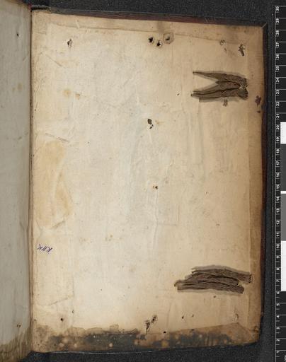 | Keywords: Gospel Lectionary (Gregory-Aland l 1496 =-l 461-=- l 1206-) - Lower cover, inside. (Add MS 37008).jpg  Style Panel design Fleur de lis Byzantine; Caption Lower cover inside ; Colour Red; Edge Unspecified exhibition history Decorative Technique Tooled in blind; Cover Material Goatskin includes morocco turkey etc Binding Stamped red leather binding 15th cent with remains of silver bosses and clasps and pins which protrude from the boards and remains of leather clasp attachment Origin Eastern Mediterranean Berat created at the Monastery of St Marina in 1413 object history Text 1413; Unspecified; Unspecified object type Cc-zero place of creation Binding Eastern Mediterranean place of discovery Unspecified British Library image http //www bl uk/catalogues/bookbindings/LargeImage aspx RecordId 020-000019578 ImageId ImageId 57802 Copyright BL Gospel Lectionary Gregory-Aland l 1496 l 461 l 1206 Uploaded with GWToolset Gospel Lectionary Gregory-Aland l 1496 l 461 l 1206 - Lower cover inside Add MS 37008 http //www webarchive org uk/bldatasets/bindings/add_ms_37008_fbrigr jpg Bookbinding 15th-century bookbinding British Library Bookbindings Taken with Phase One IQ140 |