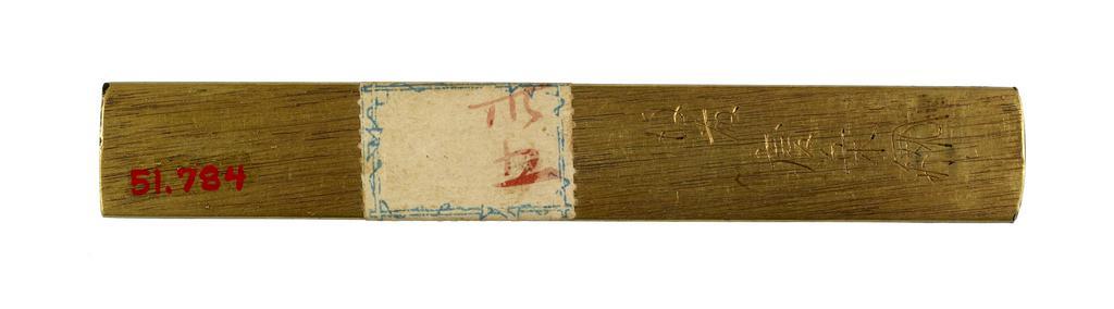 | Keywords: Gotô Keijô - Kozuka of a Bridge, Water-wheel and Castle Wall - Walters 51784 - Back.jpg This kozuka depicts a waterwheel in a river next to a castle wall On the right the castle fortifications jut into the river A bridge is at the left The reverse side of the kozuka is made of gold between 1651 1692 Edo shakudo gold cm 9 6 l accession number 51 784 39541 Henry Walters Baltimore date and mode of acquisition unknown Walters Art Museum Henry Walters Acquired by Henry Walters signature text place of origin Kyoto Japan Walters Art Museum license Kozuka in the Walters Art Museum Gotô Keijô Media contributed by the Walters Art Museum needs category review |