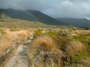 | Keywords: GoulandDowns.jpg A view of the Gouland Downs on the Heaphy Track South Island New Zealand en wikipedia 2004-03 This picture was taken by Pierre Lavaurs French Tourist West Coast Region Poaceae of New Zealand Landscapes of New Zealand Rainbows in New Zealand |