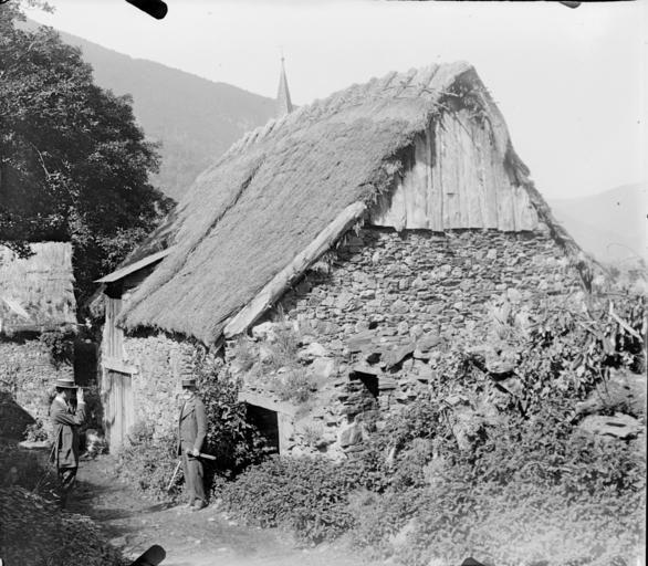 Keywords: bibliothèque de toulouse bibliothèquedetoulouse luchon maison en pierre maisonenpierre noir et blanc noiretblanc thatched roof thatchedroof blackandwhite monochrome outdoor black and white Fonds Trutat - Photographie ancienne Cote : TRU C 183 Localisation : Fonds ancien Original non communicable Titre : Gourdon, R. Guillot à Montauban, Luchon [environs], septembre 1896 Auteur : Trutat, Eugène Rôle de l’auteur : Photographe Lieu de création : Montauban-de-Luchon (Haute-Garonne) Date de création : : 1896 Mesures : 8 x 9 cm Mot(s)-clé(s) : -- Bâtisse -- Etable -- Mur -- Pierre -- Toit -- Chaumière -- Homme -- Barbe -- Costume masculin -- Canotier -- Canne -- Conversation -- Village -- Gourdon, Maurice -- Guillot, R. -- Montauban-de-Luchon (Haute-Garonne) -- Bagnères-de-Luchon (Haute-Garonne ; canton) -- Pique (France ; vallée) -- Luchonnais, Massif du (France) -- 19e siècle, 4e quart Médium : Photographies -- Négatifs sur plaque de verre -- Noir et blanc -- Portraits -- Vues d'architecture Bibliothèque de Toulouse. Domaine public Fonds Trutat - Photographie ancienne Cote : TRU C 183 Localisation : Fonds ancien Original non communicable Titre : Gourdon, R. Guillot à Montauban, Luchon [environs], septembre 1896 Auteur : Trutat, Eugène Rôle de l’auteur : Photographe Lieu de création : Montauban-de-Luchon (Haute-Garonne) Date de création : : 1896 Mesures : 8 x 9 cm Mot(s)-clé(s) : -- Bâtisse -- Etable -- Mur -- Pierre -- Toit -- Chaumière -- Homme -- Barbe -- Costume masculin -- Canotier -- Canne -- Conversation -- Village -- Gourdon, Maurice -- Guillot, R. -- Montauban-de-Luchon (Haute-Garonne) -- Bagnères-de-Luchon (Haute-Garonne ; canton) -- Pique (France ; vallée) -- Luchonnais, Massif du (France) -- 19e siècle, 4e quart Médium : Photographies -- Négatifs sur plaque de verre -- Noir et blanc -- Portraits -- Vues d'architecture Bibliothèque de Toulouse. Domaine public