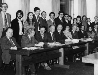 | Keywords: blackandwhite monochrome indoor group performance black and white Standing left to right: Peter Reddaway, Rodney Barker, Xenia Howard-Johnston, Fred Rosen, Maurice Cranston, John Charvet, Ken Minogue, Elie Kedourie, Eileen Gregory, Angela May, Gillian Farrier, Alan Beattie, Anthea Bennett, John Barnes. Seated left to right: Leslie Wolf-Phillips, Leonard Schapiro, Robert Orr, Richard Greaves, Peter Self, Elizabeth Schnadhorst, Keith Panter-Brick, Vincent Wright, Tom Nossiter, Ellen de Kadt, Ernest Thorp IMAGELIBRARY/231 Persistent URL: archives.lse.ac.uk/dserve.exe?dsqServer=lib-4.lse.ac.uk&a... Standing left to right: Peter Reddaway, Rodney Barker, Xenia Howard-Johnston, Fred Rosen, Maurice Cranston, John Charvet, Ken Minogue, Elie Kedourie, Eileen Gregory, Angela May, Gillian Farrier, Alan Beattie, Anthea Bennett, John Barnes. Seated left to right: Leslie Wolf-Phillips, Leonard Schapiro, Robert Orr, Richard Greaves, Peter Self, Elizabeth Schnadhorst, Keith Panter-Brick, Vincent Wright, Tom Nossiter, Ellen de Kadt, Ernest Thorp IMAGELIBRARY/231 Persistent URL: archives.lse.ac.uk/dserve.exe?dsqServer=lib-4.lse.ac.uk&a... |