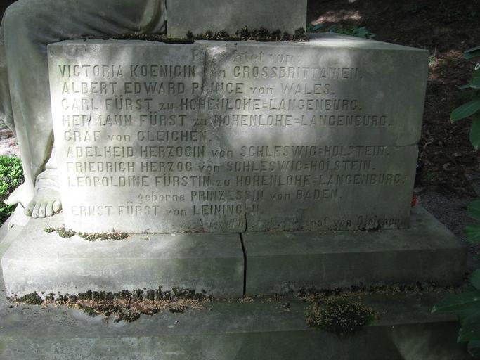 | Keywords: Grab Feodora Fürstin zu Hohenlohe Langenburg, geb. Prinzessin von Leiningen, Sockelinschrift.JPG Grab der Fürstin Feodora zu Hohenlohe Langenburg geb Prinzessin von Leiningen auf dem Hauptfriedhof in Baden-Baden Sockelinschrift own 2011-04-28 Groth-Pfeifer at http //de wikipedia org de wikipedia PD-release Original upload log page de wikipedia Grab_Feodora_F C3 BCrstin_zu_Hohenlohe_Langenburg 2C_geb _Prinzessin_von_Leiningen 2C_Sockelinschrift JPG 2011-04-28 20 41 Groth-Pfeifer 1600×1200× 1147024 bytes <nowiki> Andere Versionen </nowiki> Princess Feodora of Leiningen Hauptfriedhof Baden-Baden |