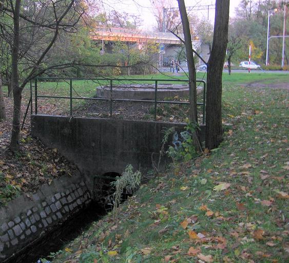 Keywords: Grabiszynka-zrodlo.jpg The well of Grabiszynka flux in Wrocław In background - railway viaduct over Racławicka street and Skarbowców/Racławicka streets crossing Początek strumienia Grabiszynka we Wrocławiu W oddali widoczny wiadukt kolejowy nad ulicą Racławicką i jej skrzyżowanie ze Skarbowców 2006-11-08 own assumed Julo Grabiszyn-Grabiszynek Wrocław