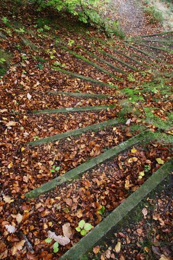 Keywords: gradually leaves autumn nature forest walk wanderfpad path away forest path stairs