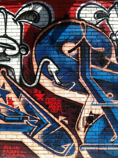 Keywords: graffiti art painting wall urban creative artistic brick wall red white and blue american flag pointing modern