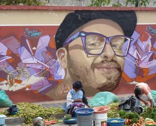 Keywords: graffiti mural painting market scene poor wall urban street streetart art vendors ecuador south america