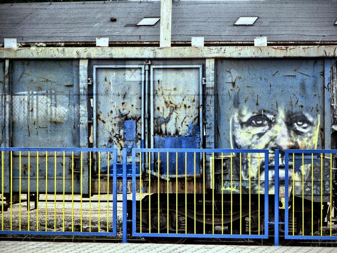 Keywords: graffiti railway package train a freight train figure the station face portrait hdr travel