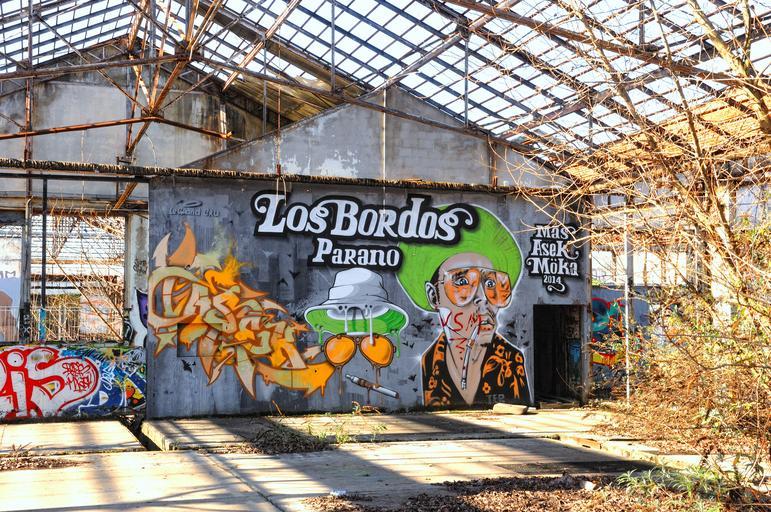 Keywords: graffiti street art painting hangar factory tag decommissioned decor colors artistic urban bomb decoration