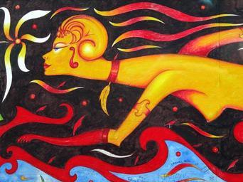 Keywords: graffiti wall berlin woman yellow red street art berlin wall