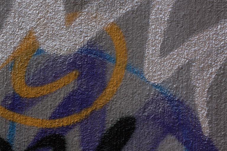 Keywords: graffiti wall grunge city home masonry facade youth creativity paint sprayer spray vandalism graphic graphically silver orange blue violet structure background fund