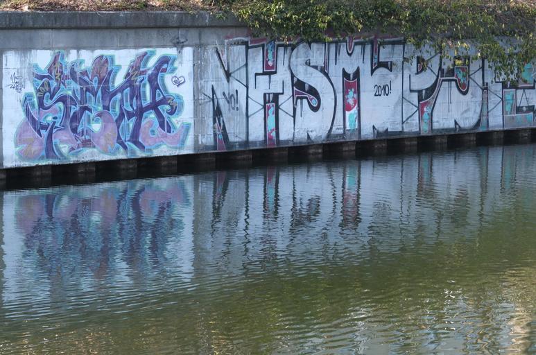 Keywords: graffiti water mirroring wall berlin heckmann shore landwehrkanal