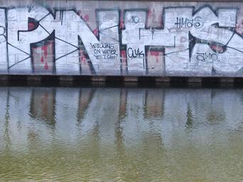 Keywords: graffiti water mirroring wall berlin heckmann shore landwehrkanal