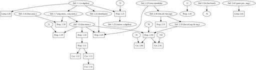 | Keywords: Grafo mostrando dependência entre definições e resultados de Medida.svg Medida e integração feita com o http //www graphviz org/License php Graphviz Trata-se de um grafo ilustrando a dependência entre conceitos e resultados da Teoria da Medida Um conceito ou resultado é usado em outro se houver um caminho uma sequência de setas de mesma orientação ligando o primeiro ao segundo own Helder 10/02/2010 Código fonte digraph G / Mensurabilidade http //pt wikibooks org/w/index php oldid 137444 / Def 1 1 s-algebra -> Def 1 7 esp mens conj mens ; Def 1 7 esp mens conj mens -> Def 1 9 fun mens ; Prop 1 10 shape box; Def 1 9 fun mens -> Prop 1 10 ; Prop 1 11 shape box; Prop 1 10 -> Prop 1 11 ; Cor 1 12 shape box; Prop 1 11 -> Cor 1 12 ; Cor 1 13 shape box; Prop 1 11 -> Cor 1 13 ; Cor 1 14 shape box; Cor 1 13 -> Cor 1 14 ; Prop 1 18 shape box; Def 1 16 fun carac -> Prop 1 18 ; Def 1 7 esp mens conj mens -> Prop 1 18 ; Prop 1 19 shape box; Def 1 9 fun mens -> Prop 1 19 ; 1 -> Prop 1 19 ; Lema 1 20 shape box; Def 1 1 s-algebra -> Lema 1 20 2 -> Prop 1 20 ; Prop 1 21 shape box; Def 1 1 s-algebra -> Prop 1 21 3 -> Prop 1 21 Prop 1 21 -> Def 1 22 menor s-algebra / A reta real estendida http //pt wikibooks org/w/index php oldid 138910 / Def 2 23 reta estendida -> Def 2 30 lim inf lim sup ; Def 1 1 s-algebra -> Def 2 25 boreliano ; Def 2 26 fun borel -> 6 ; Prop 2 29 shape box; Def 1 9 fun mens -> Prop 2 29 ; Def 2 23 reta estendida -> Prop 2 29 ; Def 2 25 boreliano -> Prop 2 29 ; Prop 2 31 shape box; Def 2 30 lim inf lim sup -> Prop 2 31 ; Def 2 30 lim inf lim sup -> Def 2 33 lim inf sup de seq Prop 2 39 shape box; Def 1 9 fun mens -> Prop 2 39 ; Def 2 33 lim inf sup de seq -> Prop 2 39 ; 8 -> Prop 2 39 ; Cor 2 40 shape box; Prop 2 39 -> Cor 2 40 ; 9 -> Cor 2 40 ; Cor 2 41 shape box; Prop 2 39 -> Cor 2 41 ; 10 -> Cor 2 41 ; Lema 2 45 shape box; Def 2 42 parte pos neg -> Lema 2 45 Measure theory Graphs graph theory |