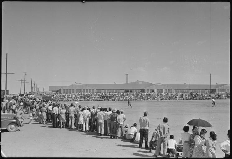 | Keywords: Granada Relocation Center, Amache, Colorado. Part of the crowd of 2,000 people, evacuees and outsid . . . - NARA - 537326.jpg Scope and content The full caption for this photograph reads Granada Relocation Center Amache Colorado Part of the crowd of 2 000 people evacuees and outsiders who witnessed a baseball game Sunday September 12 1943 between the Prowers County all-star team and an Amache team The Amache team won 20-9 General notes 537326 Local identifier 210-G-B828 Department of the Interior War Relocation Authority 02/16/1944 - 06/30/1946 NARA-Author McClelland Joe War Relocation Authority photographer Photographer 8464457 <br /> Still Picture Records Section Special Media Archives Services Division NWCS-S National Archives at College Park 8601 Adelphi Road College Park MD 20740-6001 1943-09-12 Record group Record Group 210 Records of the War Relocation Authority 1941 - 1989 Record group ARC 537 Central Photographic File of the War Relocation Authority compiled 1942 - 1945 Series ARC 536000 File unit File unit ARC Variant control numbers NAIL Control Number NWDNS-210-G-B828 Other versions <gallery> File Granada_Relocation_Center _Amache _Colorado _Part_of_the_crowd_of_2 000_people _evacuees_and_outsid_ _ _ _-_NARA_-_537326 tif tif File Granada_Relocation_Center _Amache _Colorado _Part_of_the_crowd_of_2 000_people _evacuees_and_outsid_ _ _ _-_NARA_-_537326 jpg jpg </gallery> NARA-cooperation PD-USGov Granada War Relocation Center |