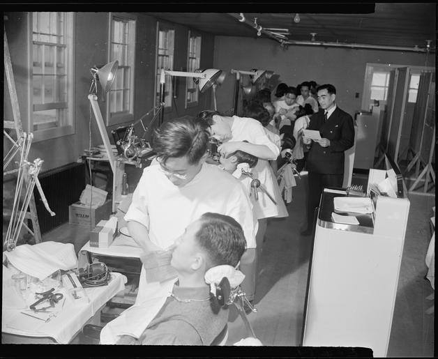 Keywords: Granada Relocation Center, Amache, Colorado. With some regular equipment and considerable makeshift . . . - NARA - 539046.tif Scope and content The full caption for this photograph reads Granada Relocation Center Amache Colorado With some regular equipment and considerable makeshift or privately owned owned equipment the dental clinic does a rushing business The head of the clinic a Japanese-American Doctor of Dental Surgery was formerly an eminent west coast oral surgeon General notes 539046 Local identifier 210-G-E479 Department of the Interior War Relocation Authority 02/16/1944 - 06/30/1946 NARA-Author Parker Tom Photographer 4682167 <br /> Still Picture Records Section Special Media Archives Services Division NWCS-S National Archives at College Park 8601 Adelphi Road College Park MD 20740-6001 1942-12-12 Record group Record Group 210 Records of the War Relocation Authority 1941 - 1989 Record group ARC 537 Central Photographic File of the War Relocation Authority compiled 1942 - 1945 Series ARC 536000 File unit File unit ARC Variant control numbers NAIL Control Number NWDNS-210-G-E479 yes Other versions <gallery> File Granada_Relocation_Center _Amache _Colorado _With_some_regular_equipment_and_considerable_makeshift_ _ _ _-_NARA_-_539046 tif tif File Granada_Relocation_Center _Amache _Colorado _With_some_regular_equipment_and_considerable_makeshift_ _ _ _-_NARA_-_539046 jpg jpg </gallery> NARA-cooperation PD-USGov Granada War Relocation Center NARA TIF images with categorized JPGs |