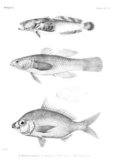 | Keywords: GrandidierMadagascarFishes 0087.jpg Eleotris macrolepidotus var tumifrons Ophiocara macrolepidotus or Ophiocara aporos Gerres oycna Batrachus grunniens Allenbatrachus grunniens Histoire Physique Naturelle et Politique de Madagascar Volume 16 Histoire Naturelle des Poissons atlas http //www archive org/details/histoirephysique16gran web 1885 text Alfred Grandidier 1836-1921 artists various Jobin pd-old-70 Alfred Grandidier Histoire Physique Naturelle et Politique de Madagascar - Grandidier - Volume 16 Poissons Batrachoididae Allenbatrachus grunniens |