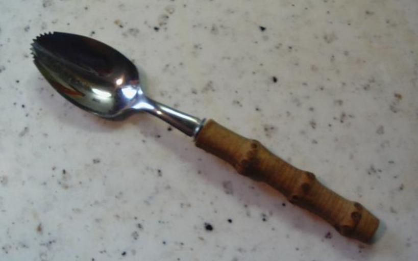 Keywords: Grapefruit spoon.jpg A grapefruit spoon with wooden handle Note the serrated tip The Epopt talk <br/> Transferred from http //en wikipedia org en wikipedia to Commons by User Magnus Manske using http //tools wikimedia de/~magnus/commonshelper php CommonsHelper 2005-10-22 The Epopt at http //en wikipedia org en wikipedia The Epopt Original upload log page en wikipedia Grapefruit_spoon jpg 2005-10-22 18 33 The Epopt 656×410× 26772 bytes <nowiki> the Epopt </nowiki> Unidentified Citrus Spoons |