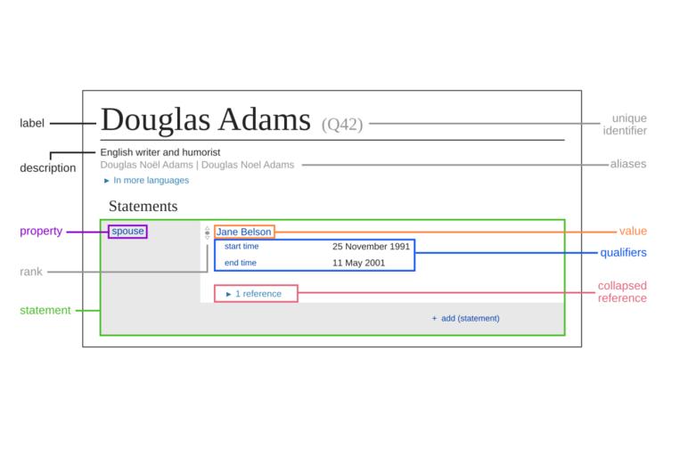 | Keywords: Graphic representing the datamodel in Wikidata.svg en Graphic representing the datamodel in Wikidata with a collapsed reference 2016-06-21 own Charlie Kritschmar WMDE other versions cc-zero Graphics Wikidata information materials Wikidata Wikidata visualizations |