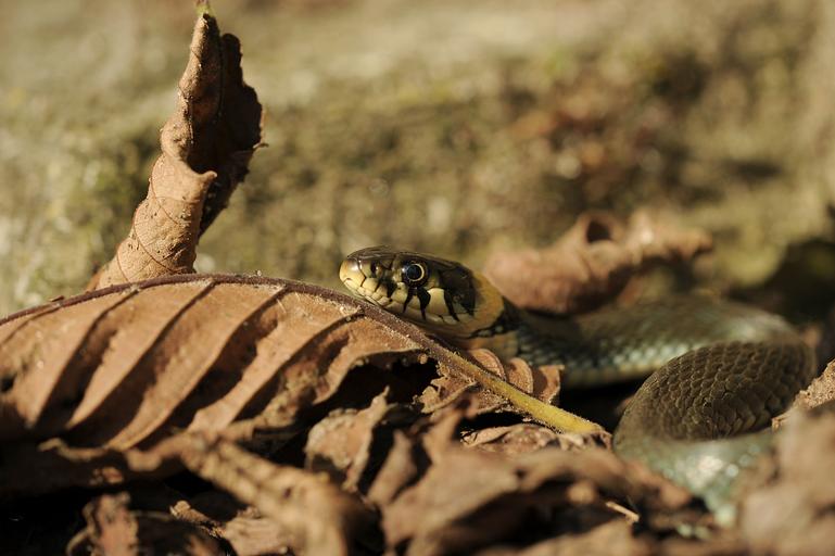 Keywords: grass snake natter snake non-hazardous leaf welkes sheet nature sun