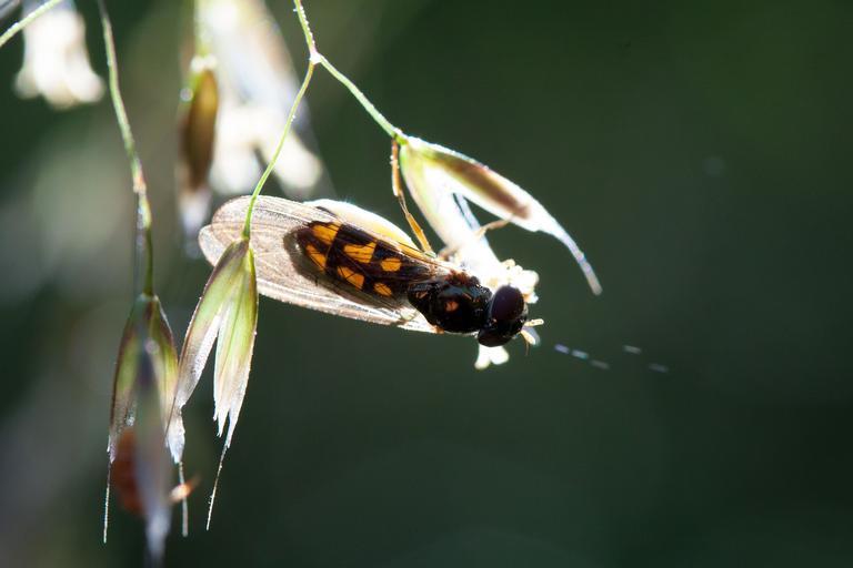 Keywords: grasses grass flowers stamp pollen quaking grass awns back light macro hoverfly